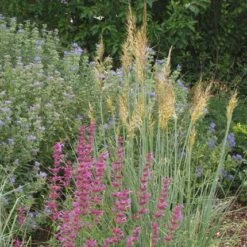 Aster laevis ‘Bluebird’ (Smooth Aster) covers itself with a profusion of violet-blue flowers that bloom in late summer through fall. It is a highly-rated wildflower that attracts all types of native bees and butterflies including migrating Monarchs.