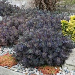 Stomatium mustilinum is a small, mat-forming groundcover blooms in mid-spring with a fragrant display of yellow night blooming flowers. Native to the dry, cold Western Cape province of South Africa, this has proven to be a reliably cold hardy succulent for the xeriscape or rock garden. Plant in between rocks in pockets of soil that won’t stay too wet over the winter months. Good for Firescaping